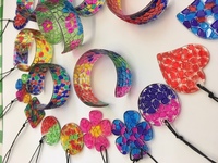 Transparente Mosaik-Armreifen und Kettenanhänger aus Acyrlglas zum Bemalen. Diese tollen transparenten Armspangen und Kettenanhänger werden einfach mit Glasmalfarbe bemalt. Das ist unkompliziert und eine schöne Aktivität zum Basteln von Schmuck. Mit Glasmalstiften mit feiner Spitze lassen sich schöne Buntglaseffekte erzielen. Ein tolles Accessoire!