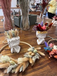 In diesem Workshop stellst du selbst ein schönes Blumenmädchen aus Gießkeramik her und bestückst es mit Trockenblumen.
