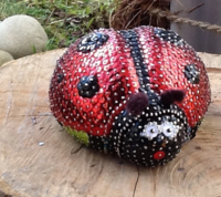 Kleine Figuren mit Pfiff könnt ihr gestalten, so wie diesen niedlichen Marienkäfer. Einfach die Styroporformen bemalen und anschließend Pailletten mit Stecknadeln aufstecken. Zum Schluss noch die Figuren mit Wackelaugen versehen. Als Dekoration für den Tisch oder als kleines Geschenk.