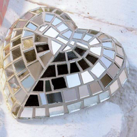 Aus einem flachen Styroporherz (15 cm) wird mit Spiegelmosaik ein auffallend schönes Dekorationsstück für Haus und Balkon. Dieses spiegelnde Herz fällt immer auf. Allerdings heißt es, vor dem Loslegen einen Plan zu machen, damit die Spiegel richtig liegen, denn nur dann sieht es gut aus.