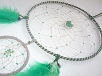 Die edelsten Vertreter unseres Traumfänger-Angebots sind mit Schmucksteinen versehen. Ob als Raumschmuck oder Dreamcatcher - sie stellen in jedem Fall einen Blickfang dar. Die Wirkung kann durch verschiedene Schmucksteine ganz gezielt beeinflusst werden. So steht zum Beispiel der Türkis für Heiterkeit und Schutz. Kleine eingewebte Perlen sollen der Legende nach die unerwünschten Träume zum Verweilen und Spielen im Traumfänger anregen. So bleiben sie uns fern und werden morgens von der Sonne verscheucht. Aus Perlen und bunten Federn fertigt jeder ein Exemplar mit persönlicher Note. Als Besonderheit wird er mit edlen Schmucksteinen verziert.